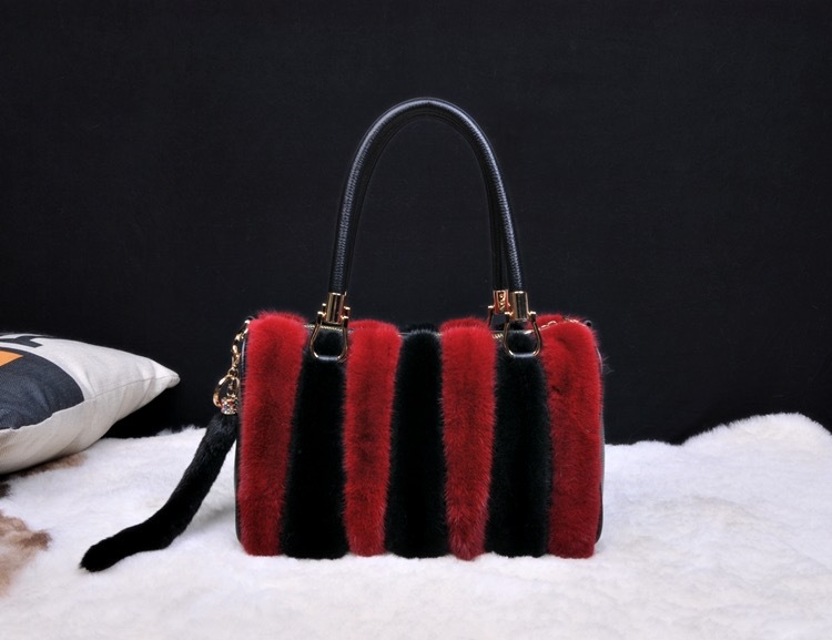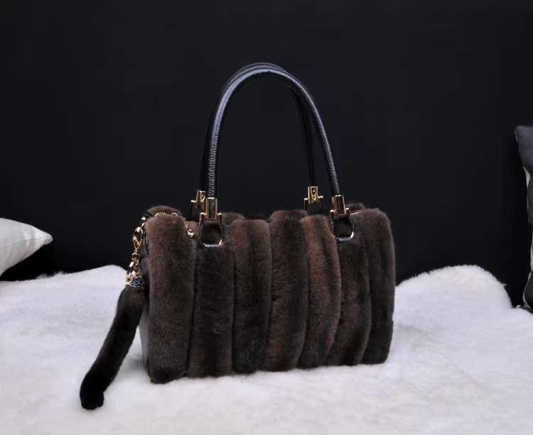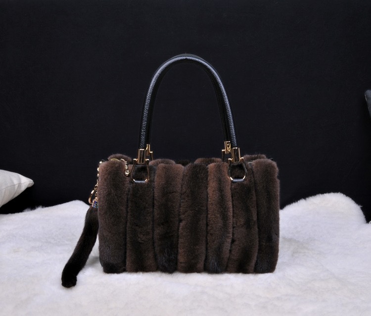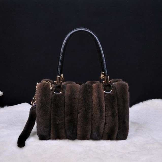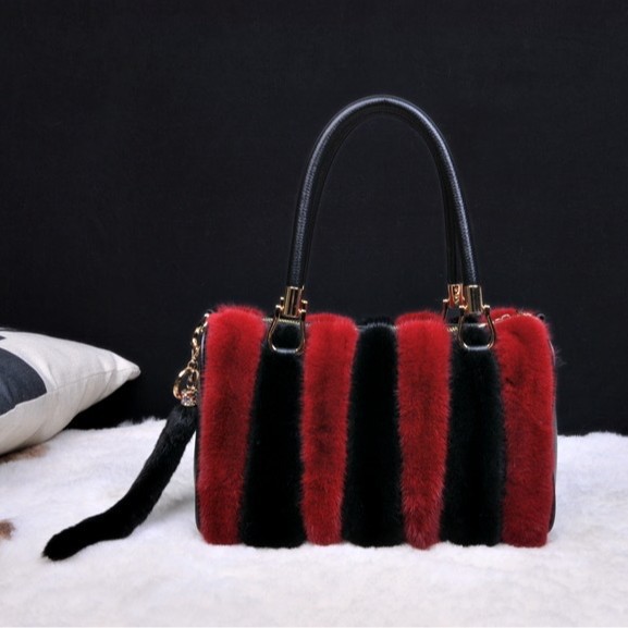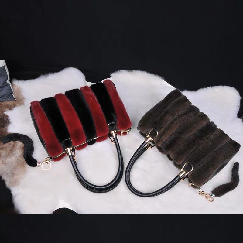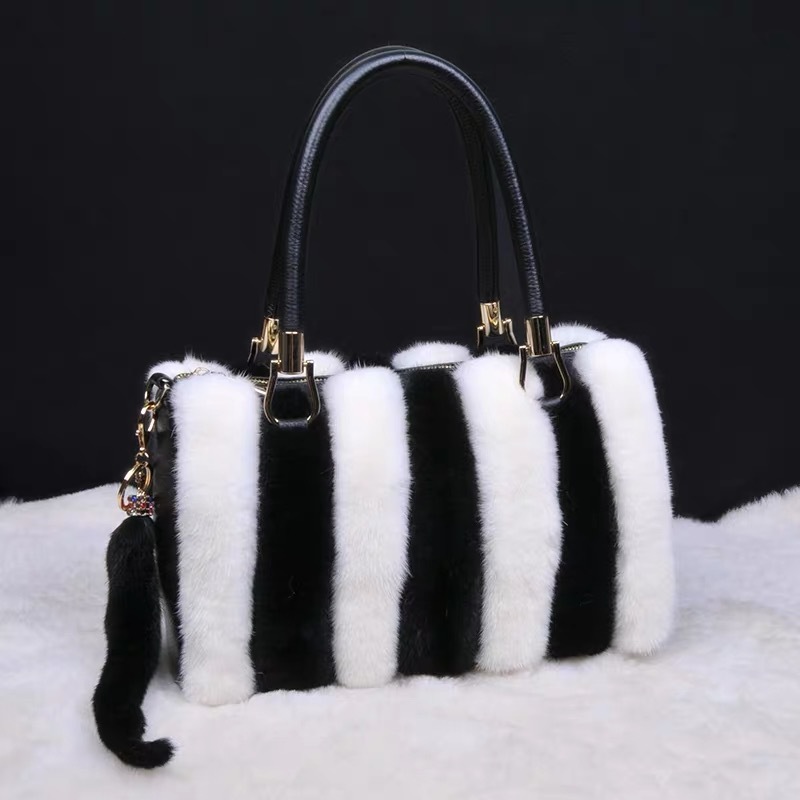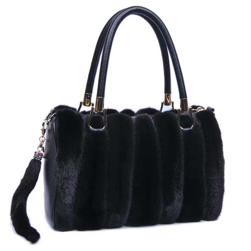 VYRA Mink with Top Layer Cowhide Leather Handheld Crossbody Women's Bag